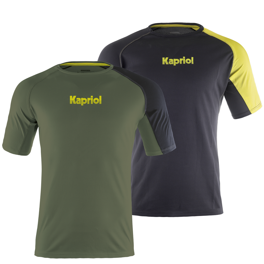 • Distinctive Colour Options & Branding, available in two practical and stylish colour combinations: Dark Green with Black left sleeve: A professional look with subtle contrast or alternatively, Black with Yellow left sleeve: A bolder option providing increased visibility and modern appeal. Both colour variants feature the prominent Kapriol Logo print on the chest in a contrasting yellow, clearly identifying the brand and adding a touch of dynamic styling.